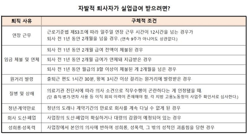 실업급여를 받으려면 몇 가지 조건을 만족해야 합니다. 회사를 그만두기 전 18개월 동안 180일 이상 일해야 하고, 내 의지가 아닌 이유로 퇴사해야 합니다. 예를 들어, 회사가 문을 닫거나, 나쁜 대우 때문에 어쩔 수 없이 그만두는 경우 등이 이에 해당합니다. 더 자세한 내용은 노동OK 실업급여 설명을 참고하시면 좋습니다.